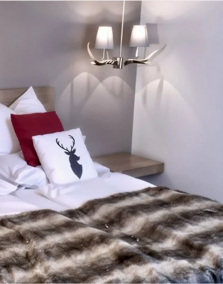 Key Materials: Oak Wood, Fur, Red Accents, Antler Lamps
