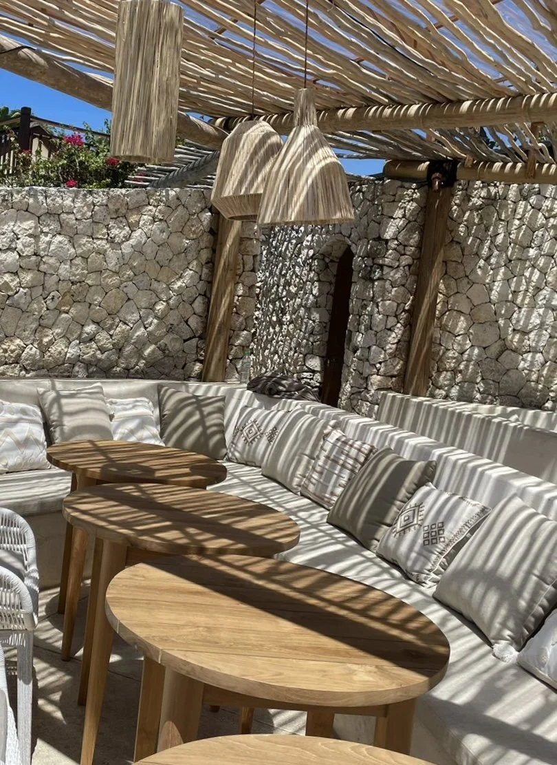 We embraced the raw beauty of the coastal landscape by incorporating natural rock stone formations and rich teak-and-rope furniture, creating a seamless connection to the environment.
